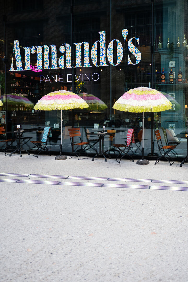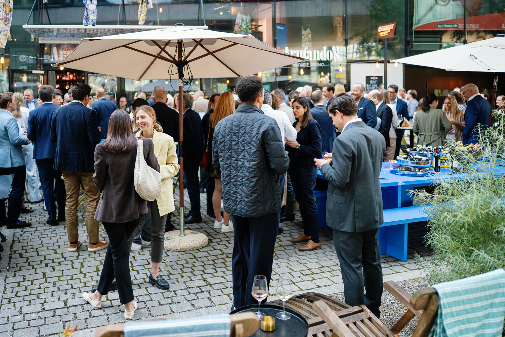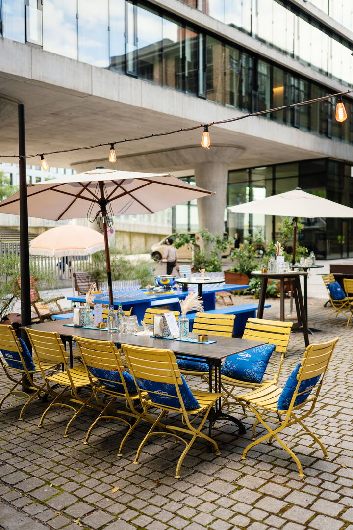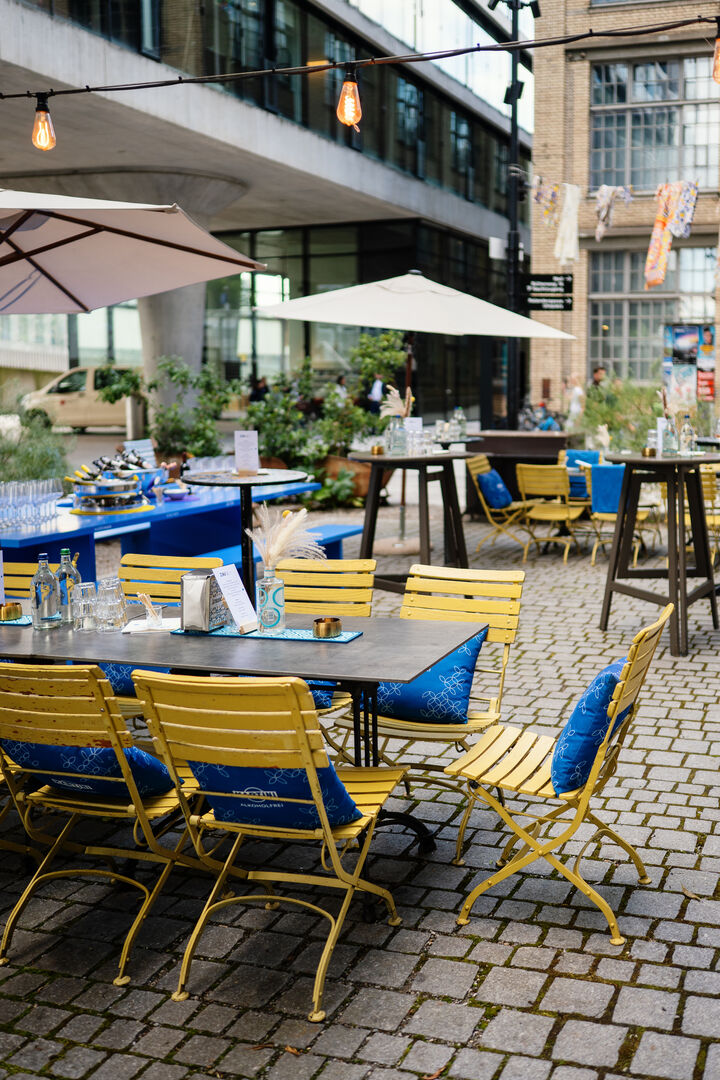 - È ora di aperitivo – Unser blauer Tisch im Sommermodus.