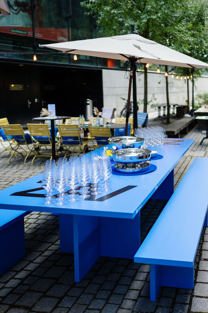 - È ora di aperitivo – Unser blauer Tisch im Sommermodus.